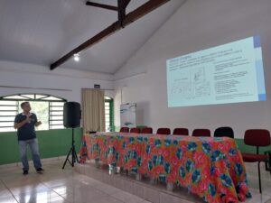 Eduardo Cyrino apresentou ainda um histórico dos trabalhos realizados pela Embrapa sobre qualidade da água que analisaram fluxo de nutrientes, agrotóxicos, impactos urbano e agrícola sobre a qualidade da água de corpos hídricos do Distrito Federal, até chegar a análise de IQA suas relações com o meio biótico e com a paisagem.