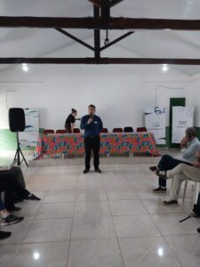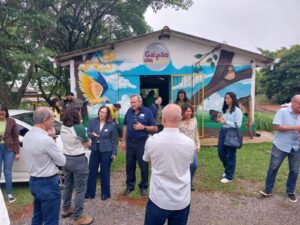 Logo no início das atividades, foi realizada uma visita pela área da Associação, que além de uma horta comunitária, agrofloresta, quadra de futebol, salão de reuniões, conta com um galpão onde são realizadas aulas de corte e costura para a comunidade interessada.